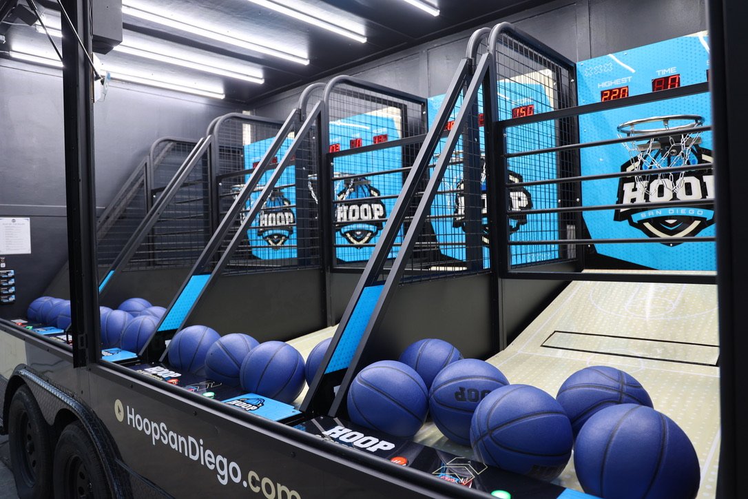 We put 4 arcade basketball machines in a trailer.